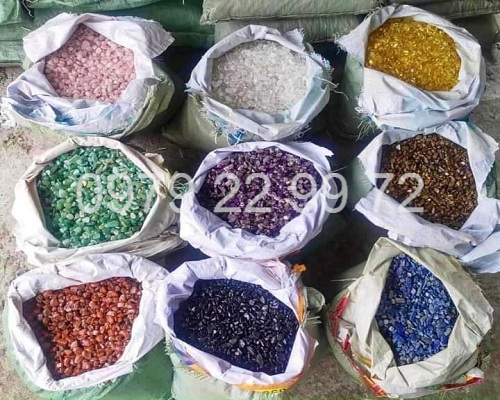 Chất liệu hạt đá gồm các loại: đá cẩm thạch, thạch anh, đá granit, đá thủy tinh, đá vụn tự nhiên,..